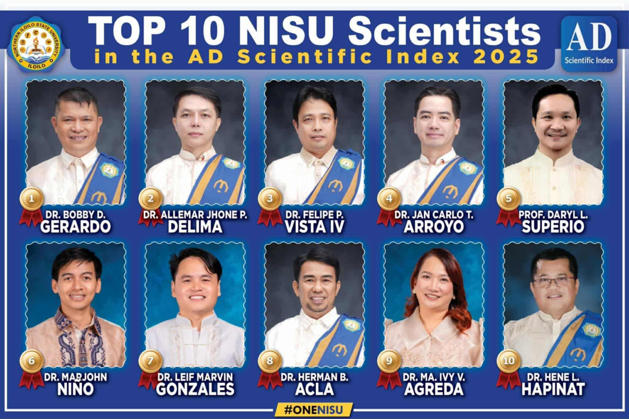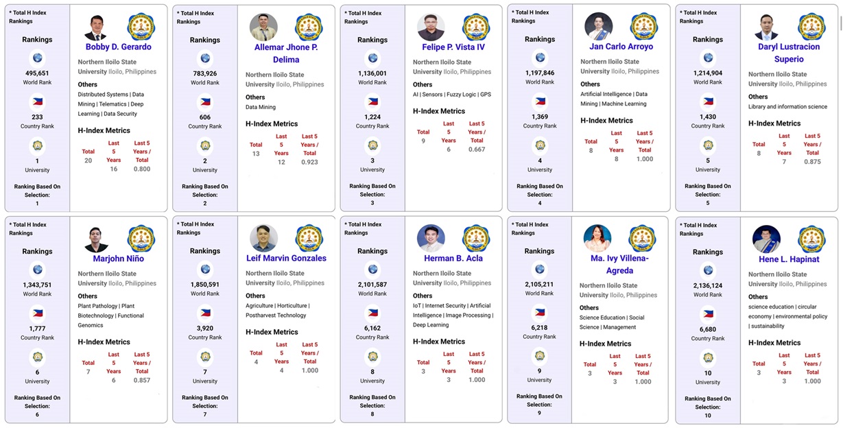 The Top 10 Northern Iloilo State University Scientists in the AD Scientific Index 2025