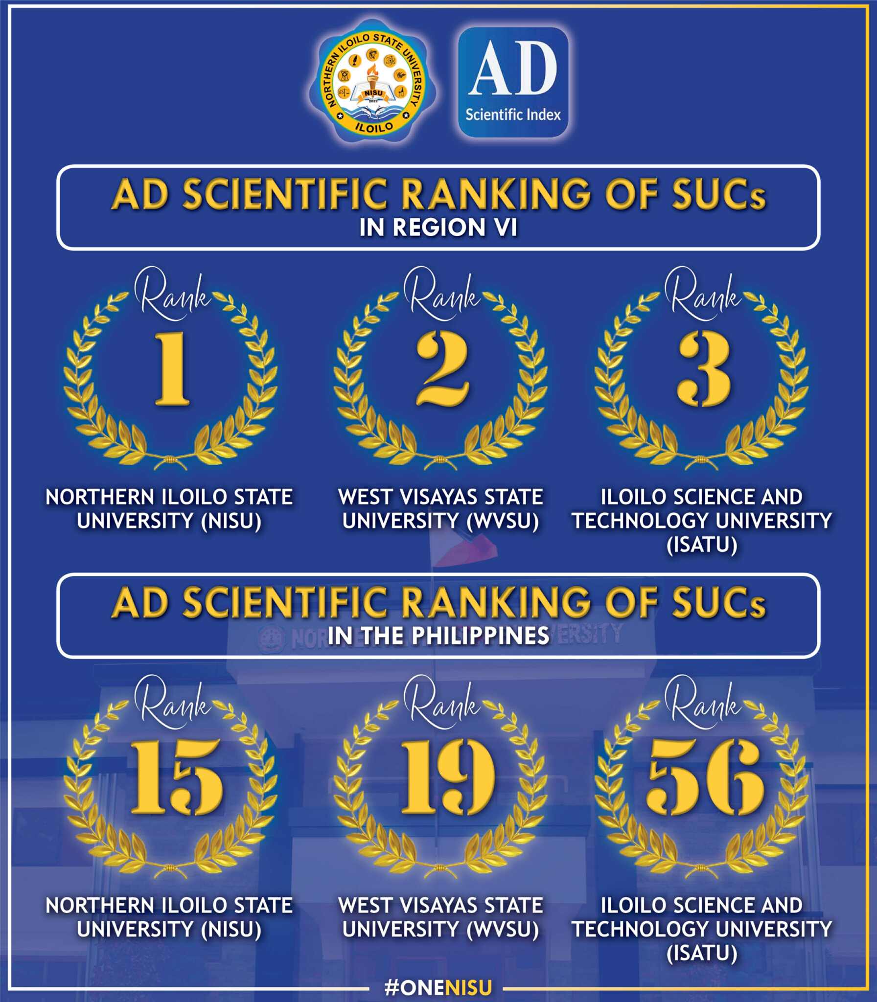 Northern Iloilo State University Tops Region VI and Ranks 15th Nationwide in 2025 AD Scientific Index