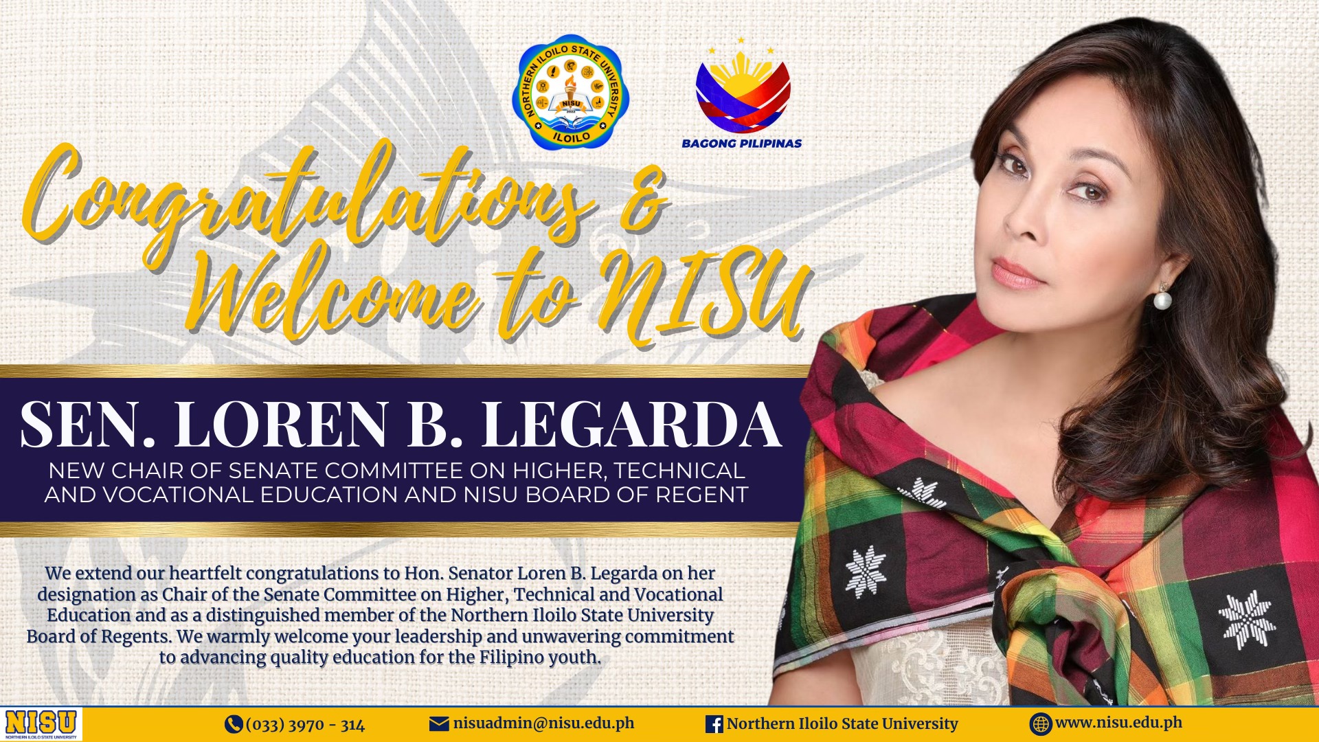 NISU Extends Congratulations and Warm Welcome to Sen. Loren B. Legarda