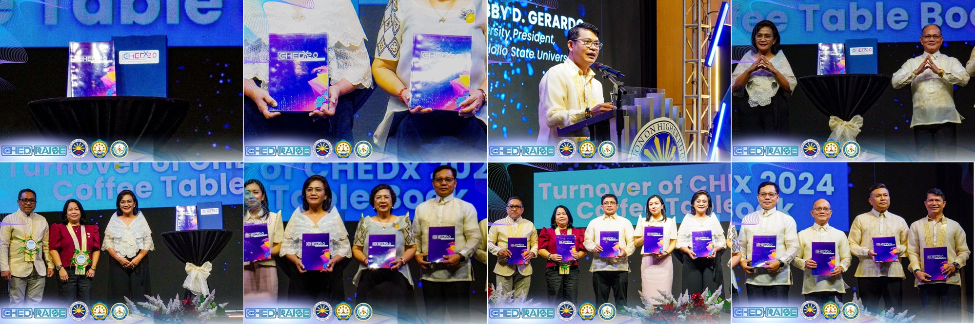 Commission on Higher Education Region XI Chair, Dr. Maricar R. Casquejo, and the University of Southeastern Philippines presided over the official turnover of the CHEDX 2024 Coffee Table Book to CHED Region VI, headed by Dr. Raul Muyong, University President Dr. Joselito F. Villaruz (WVSU), and University President Dr. Bobby D. Gerardo (NISU), along with CHED Chair Dr. Shirley C. Agrupis.